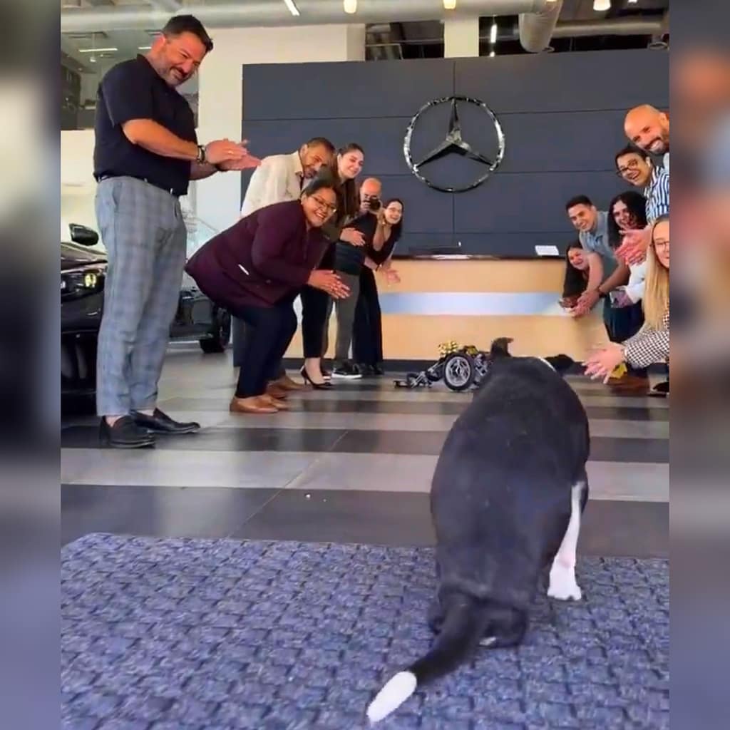 Cadela ganha cadeira de rodas de marca de carros de luxo