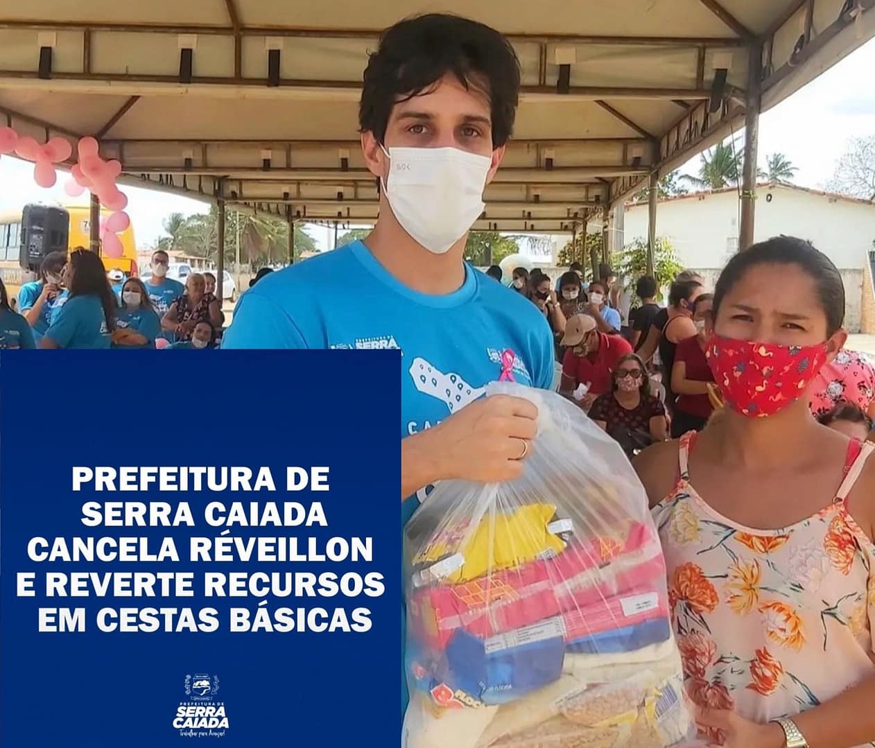 Porém pegou todo o dinheiro que seria gastos com as festas e reverteu todo em cestas básicas para a população.