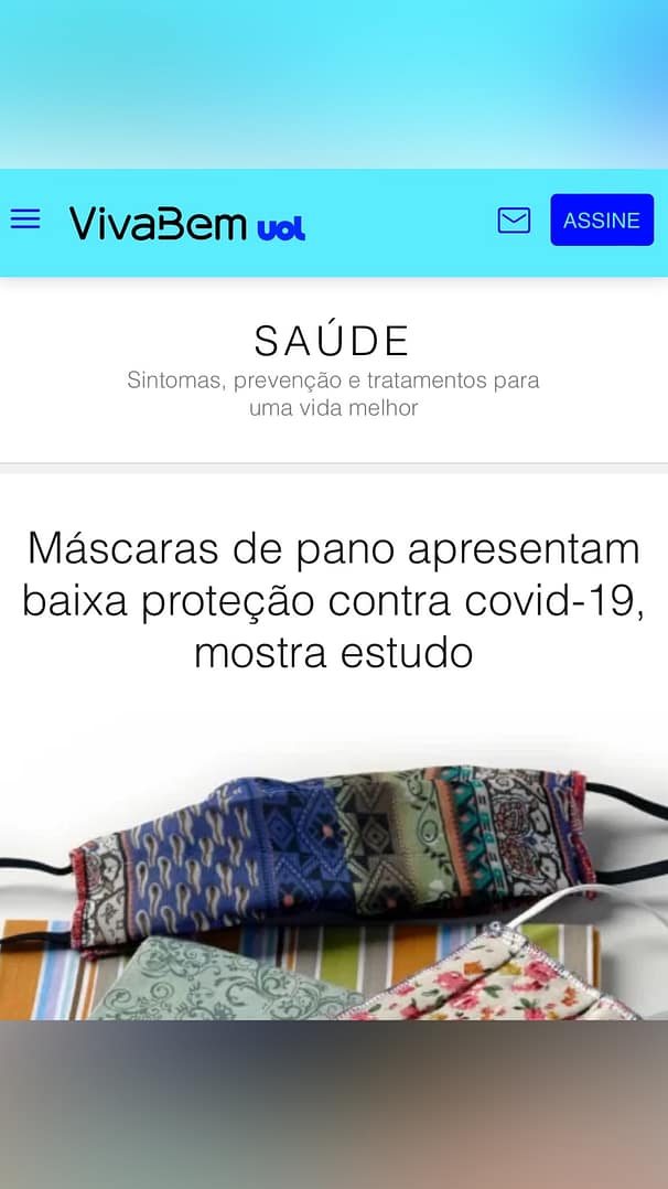 O artigo descobriu que, para partículas com diâmetro de 1,5 micrômetros (consideradas muito pequenas), a eficácia da máscara de tecido ficou entre 2,5% a 10%.
