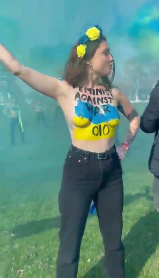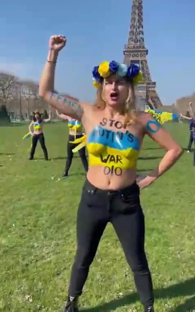 Mulheres mostram os peitos contra a guerra em Paris, assistam!