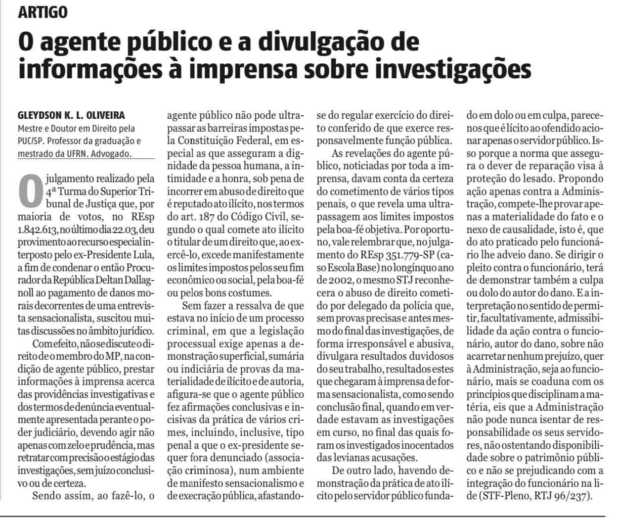 O julgamento realizado pela 4ª Turma do Superior Tribunal de Justiça que, por maioria de votos, no REsp 1.842.613, no último dia 22.03, deu provimento ao recurso especial interposto pelo ex-Presidente Lula, a fim de condenar o então Procurador da República Deltan Dallagnoll ao pagamento de danos morais decorrentes de uma entrevista sensacionalista, suscitou muitas discussões no âmbito jurídico.