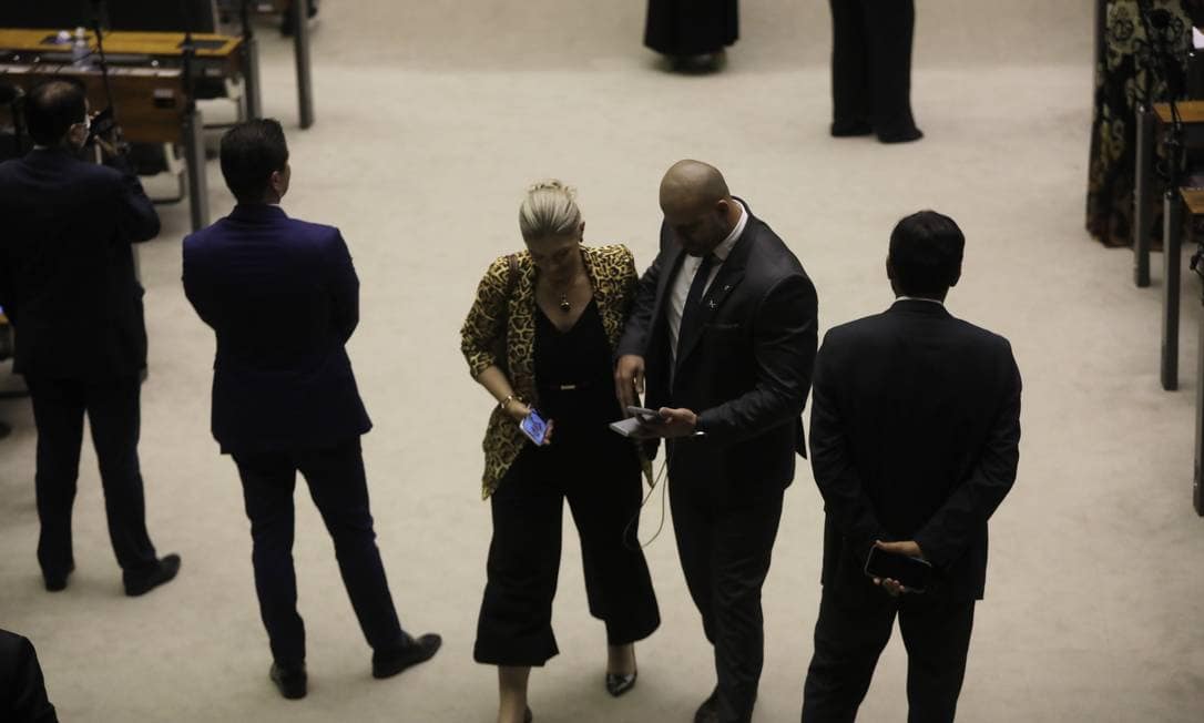 Em outra gravação, já na chegada à Câmara, Carla disse a repórteres que estava levando água e travesseiro para o aliado bolsonarista e que pelo menos oito pessoas estavam com ele naquele momento (mas não soube responder quantos passariam à noite no local).