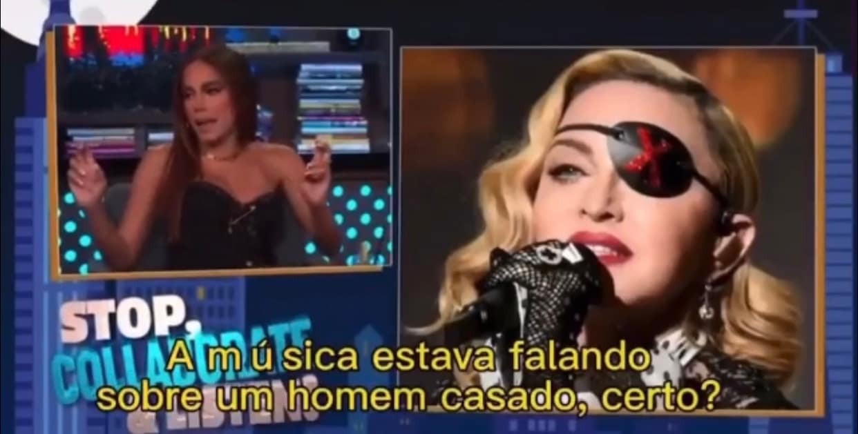 O mais interessante é que a Luísa Mel não fala nada, tá lá atrás da pomba que caiu no show aqui.