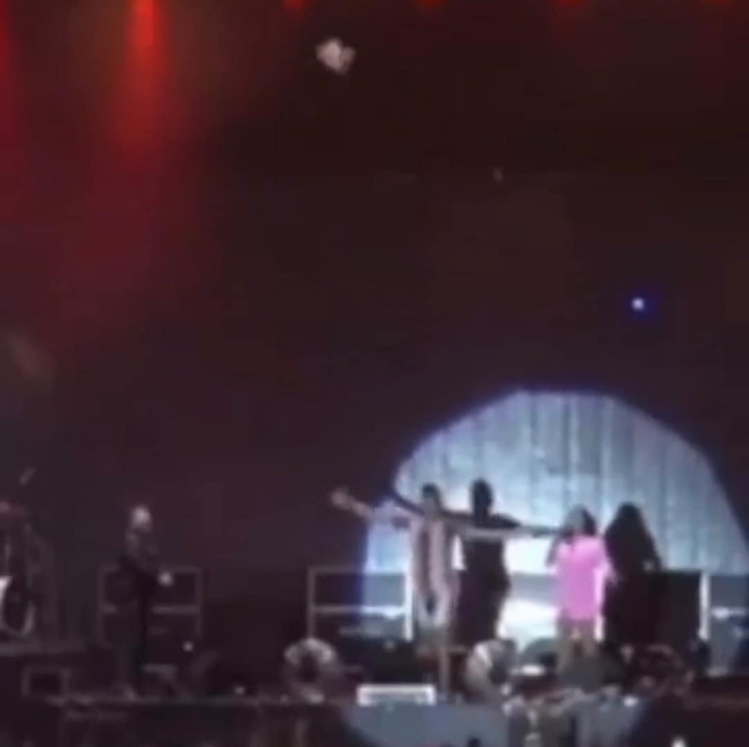 A cantora começou pedindo: “Vamos fazer uma homenagem para essa galera da Bahia”. A banda estava em Salvador. Logo veio o momento mais “vergonha alheia” do Brasil, a pomba foi arremessada para cima, mas se perdeu no ar e caiu em cima do público.