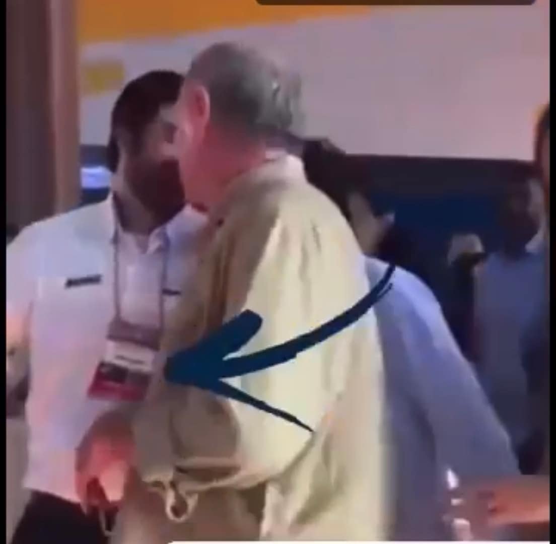 Logo depois, o ex-político tenta levar a mão à barriga do homem que o interpelava.