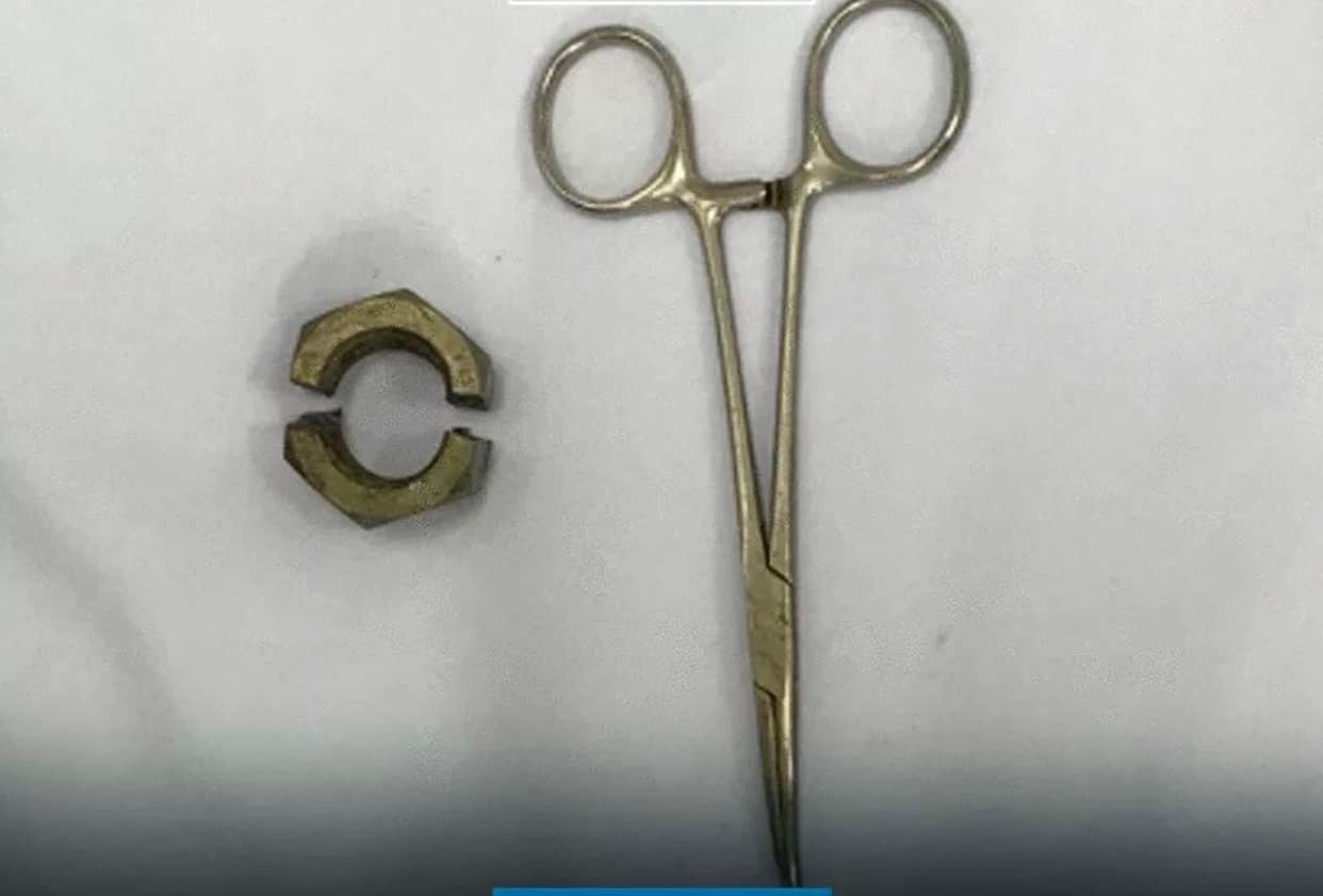 O homem recebeu analgésicos e sedativos para a dor, e os médicos passaram a tentar realizar a retirada do objeto com o auxílio de lubrificantes, mas não tiveram sucesso devido ao quão apertada a porca estava na região. Então, foi utilizada uma broca odontológica para conseguir cortar o objeto.