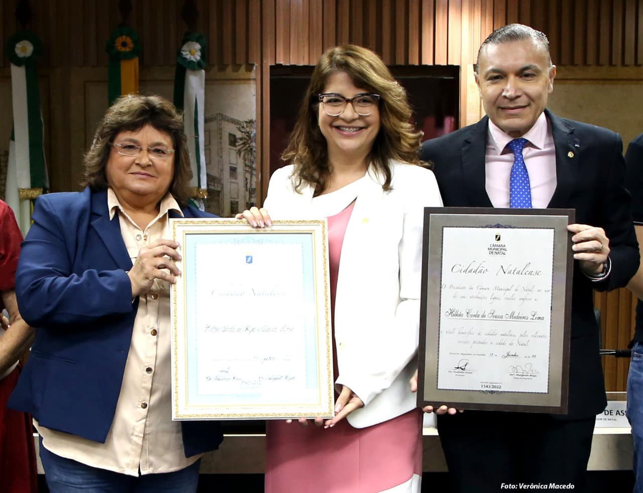 A Câmara Municipal entregou, nesta segunda-feira (13), o Título de Cidadã Natalense à ex-vereadora e atual deputada federal Hilkéia Carla Souza de Medeiros Lima, mais conhecida como Dra. Carla Dickson. A proposição foi da vereadora Margarete Régia (PROS).