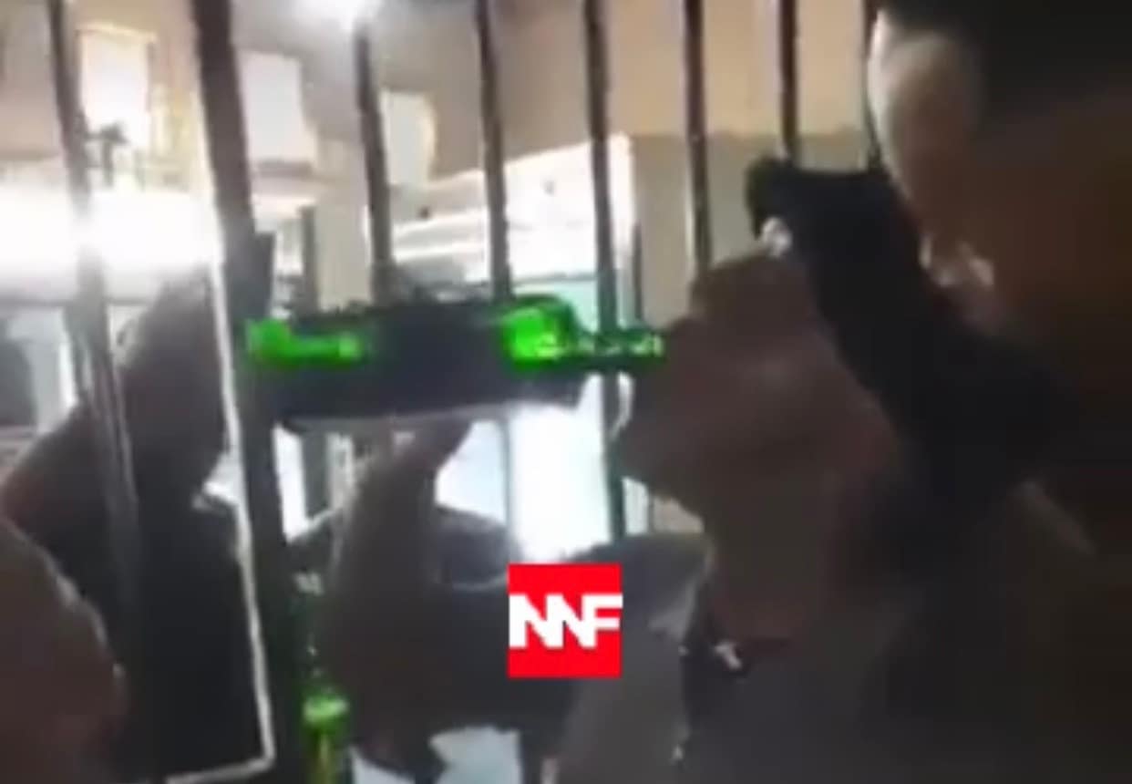 Imagens compartilhadas na internet mostram pessoas aplaudindo enquanto ele engolia o digestivo alemão.