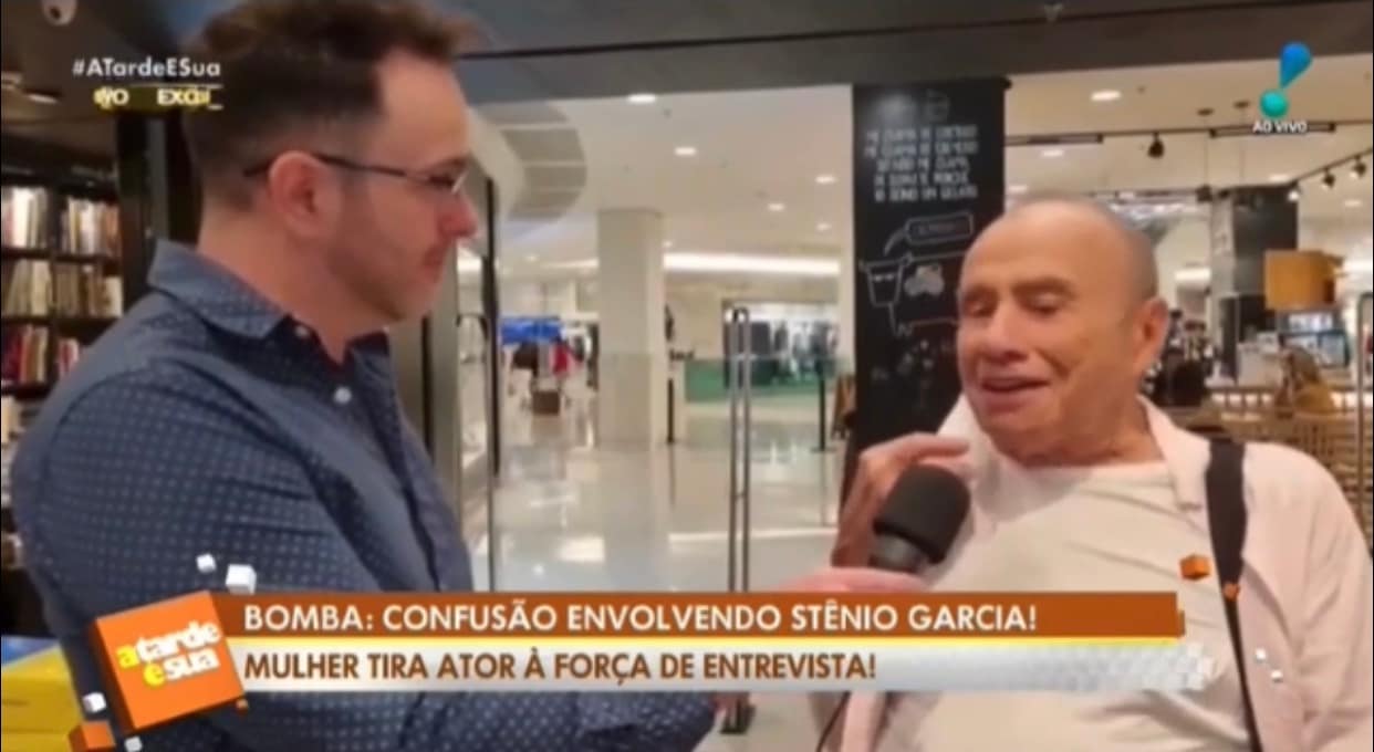 “Não pode pegar coronavírus, você não pegou até agora”, diz Saade. “Socorro”, grita Stênio. “Não, desculpa”, responde a esposa do ator após o repórter tentar apaziguar os ânimos.