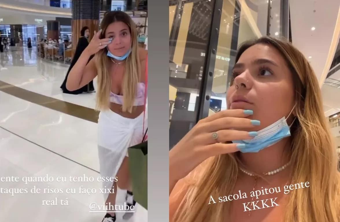 O fato acomteceu quando Viih saiu de uma loja da Gucci com uma sacola na mão e estava gravando um vídeo para mostrar as compras, quando foi chamada por um segurança porque teria apitado ao passar pela porta. “A pessoa ri tanto que está mijando. Vai logo, vai no banheiro. Mijando com Gucci na mão, misericórdia”, brincou Viviane ao filmar a filha dando risada.