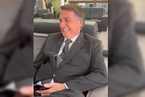 “Olha a cara de preocupado do presidente com o JN [Jornal Nacional]”, brinca Fábio Faria. “Opa! Vou dar um beijo no Bonner hoje, pô”, diz Bolsonaro, em meio a risadas.