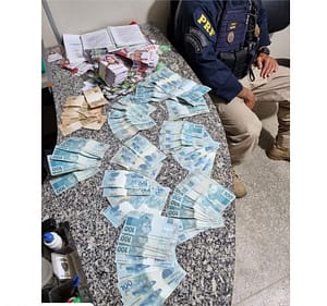 Junto a um casal foi encontrado a quantia de R$ 8.615,00 em espécie e vasto material de campanha, como dezenas de milhares de santinhos e adesivos, além de listas e anotações de quem iria receber o dinheiro.
