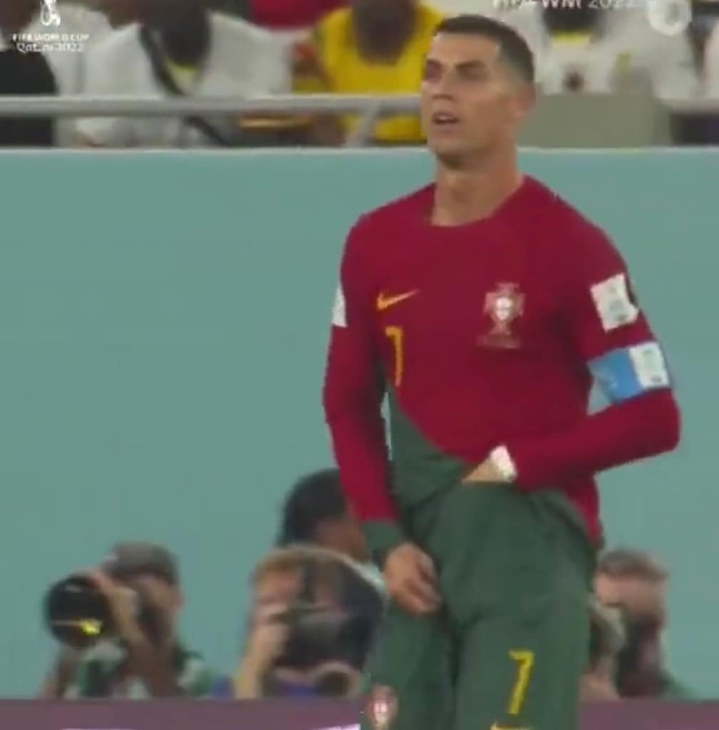 No entanto, foi um lance totalmente não relacionado ao jogo que acabou dando muito o que falar. Enquanto era seguido por câmeras, Cristiano foi flagrado colocando a mão dentro do calção e logo depois levando a boca.