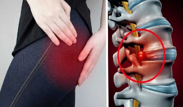 Dor nas nádegas, na coxa e na panturrilha, se a hérnia for na região lombar;