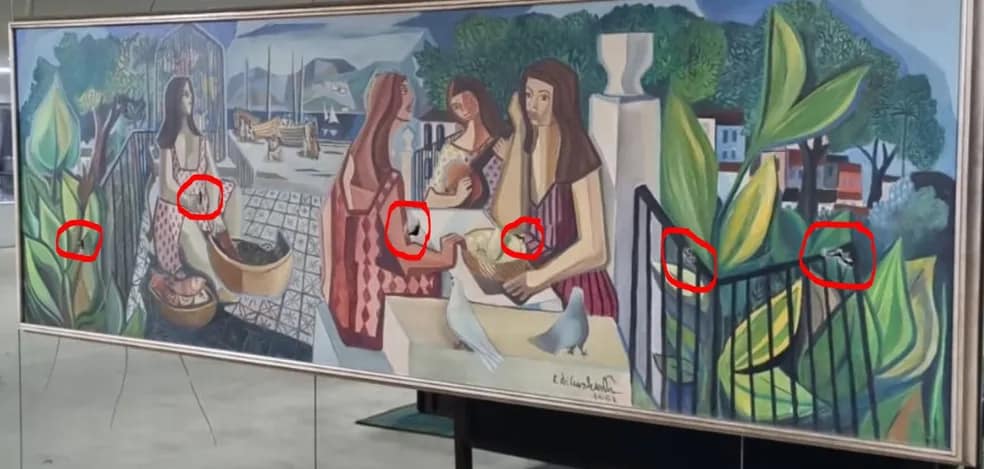 A principal peça do Salão Nobre do Palácio do Planalto foi encontrada com sete rasgos de diferentes tamanhos, segundo a SECOM (Secretaria de Comunicação). A obra é uma das mais importantes da produção de Di Cavalcanti. Seu valor está estimado em R$ 8 milhões.