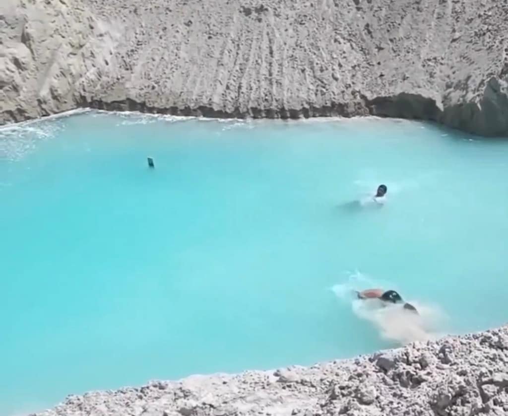 A “lagoa” de águas azuis que surgiu em Parnamirim, na Grande Natal, durante escavações de a obra de uma Estação Elevatória de Esgotos (EEE) nesta semana, tem despertado a curiosidade e atraindo visitantes. O Idema recomenda que não se deve entrar em contato com a água. A tonalidade da água, segundo o órgão ambiental, é por conta de um fenômeno da refração da luz. Apesar disso, os visitantes confiam que o local poderia ser uma área de lazer e turismo, ainda que não exista nenhuma informação técnica e oficial a esse respeito.