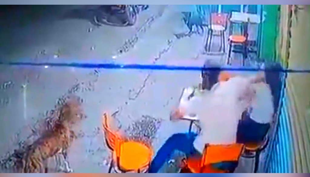 No vídeo, uma câmera externa de monitoramento em um comércio registra a conversa da dupla, quando o agressor dá um soco e tapas no rosto da mulher, além de empurrá-la contra a fachada do estabelecimento. Como reação, a vítima acerta um soco no meio do rosto do companheiro, que ainda recebe uma cadeira no rosto.