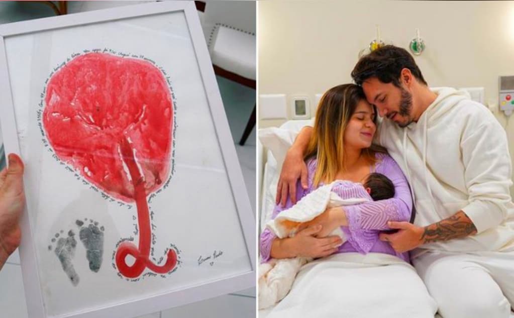 Obra, realizada pela doula Cacau Prado, consiste em usar a placenta como um “carimbo” em um quadro. Primeira filha do casal Viih Tube e Eliezer, ex-BBBs, nasceu no Domingo de Páscoa.