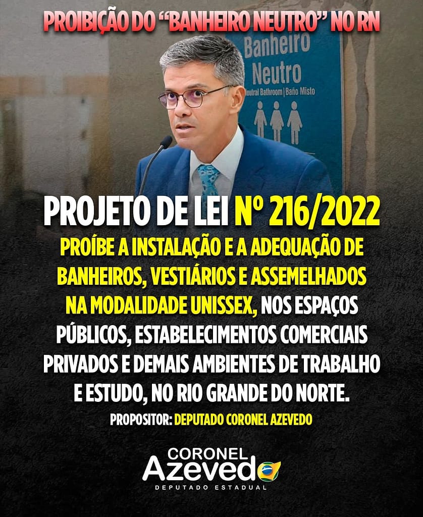 DeputadoCoronelAzevedo #BanheiroNeutroNão