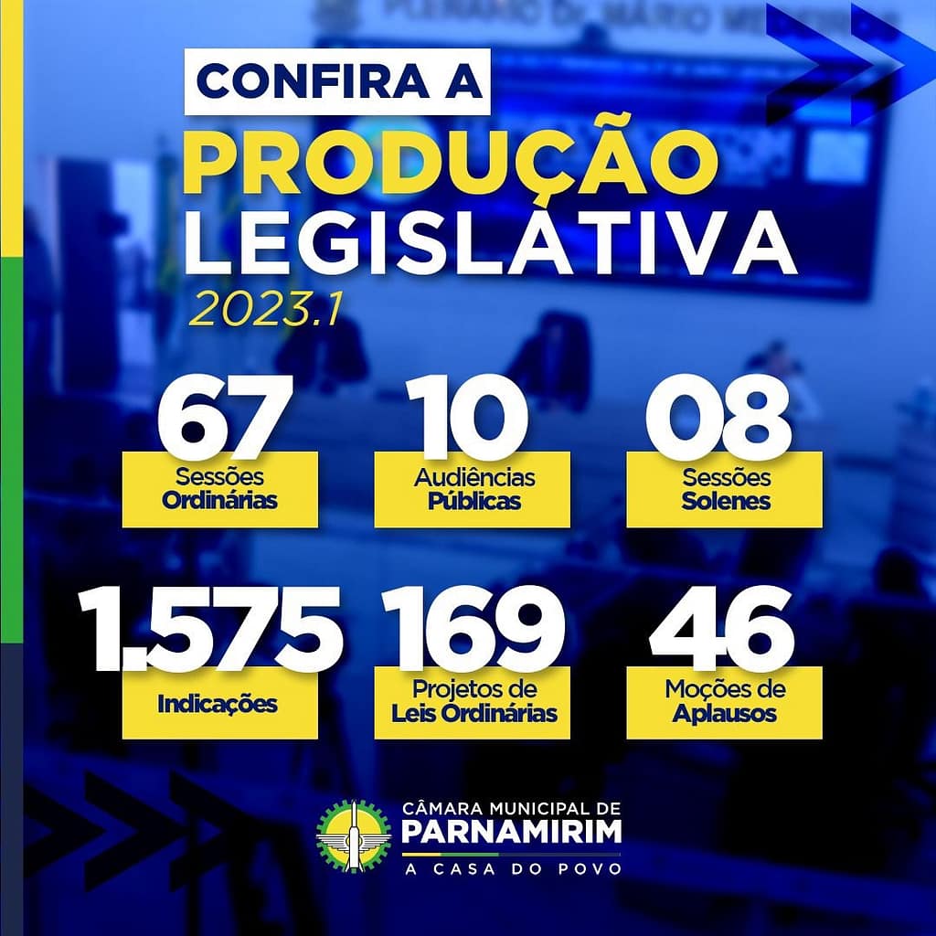 O presidente da Câmara de Parnamirim, vereador Wolney França, apresentou um balanço com os números referentes à produção legislativa deste primeiro semestre de 2023, durante a sessão ordinária realizada nesta quinta-feira (13). Esta foi a última sessão antes do recesso parlamentar, que ocorre de 18 a 31 de julho, e a primeira sessão do segundo período legislativo será no próximo dia 1º de agosto.