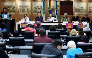 As vereadoras Ana Paula (SD), Júlia Arruda (PCdoB) e os vereadores Zé Humberto (PP) e professor Robério Paulino (PSOL) também participaram da audiência.