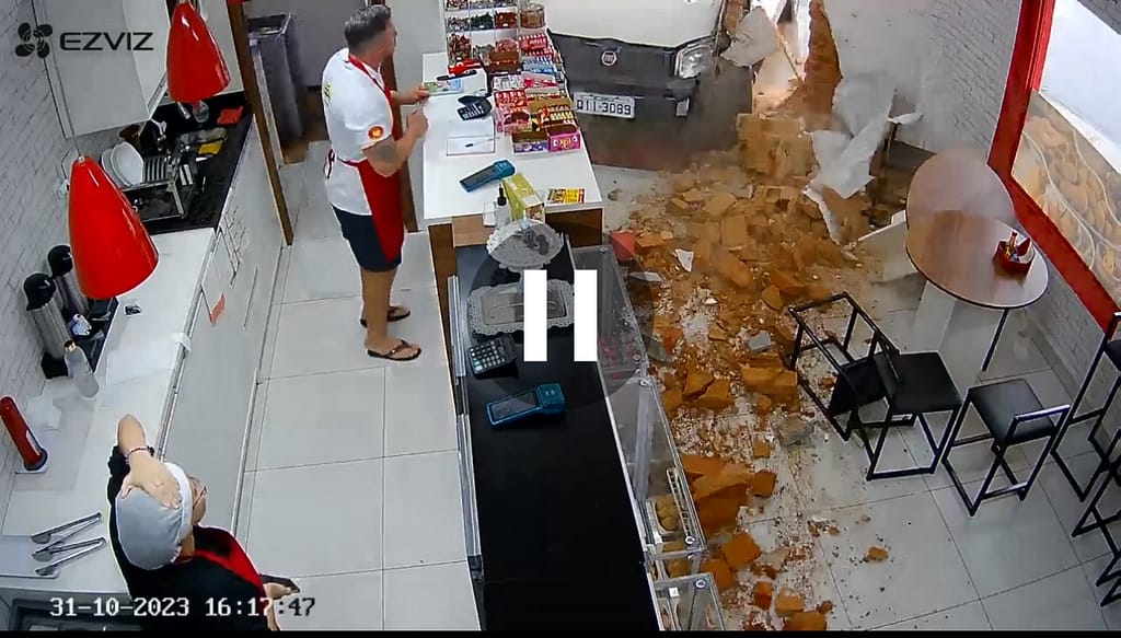 Com a colisão, o condutor da Fiorino perdeu o controle do carro e só parou ao bater na parede da lanchonete. De acordo com Juan, o prejuízo foi de cerca de R$ 3 mil.