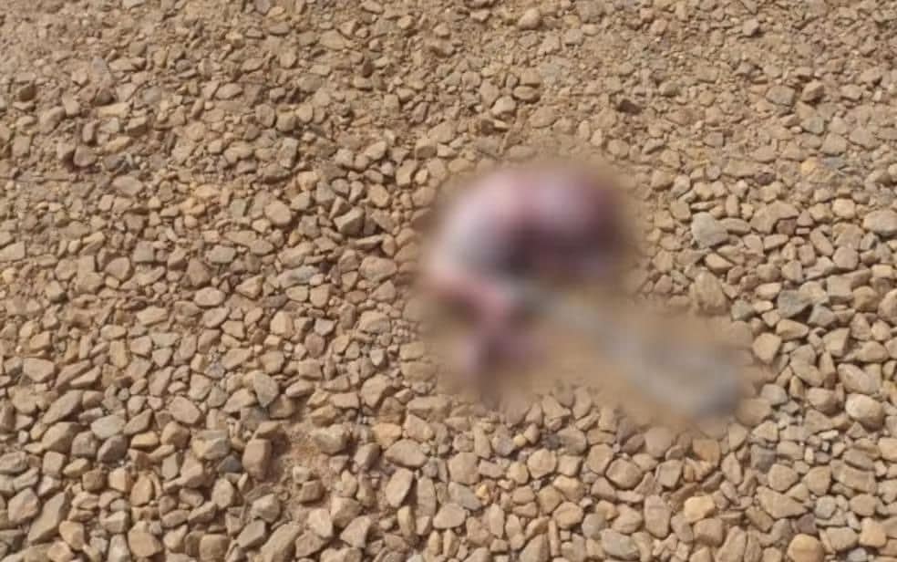 Um feto foi encontrado na rodovia após ser carregado na boca por um cachorro.