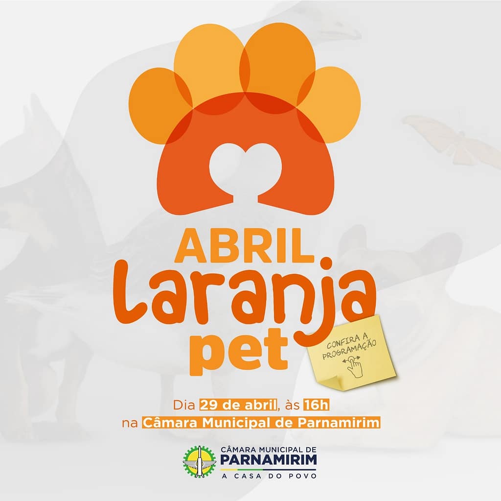 Convidamos este veículo de comunicação para participar da 3ª edição do “Abril Laranja Pet”. Um evento da Câmara Municipal de Parnamirim, que objetiva alertar para os maus-tratos contra os animais.