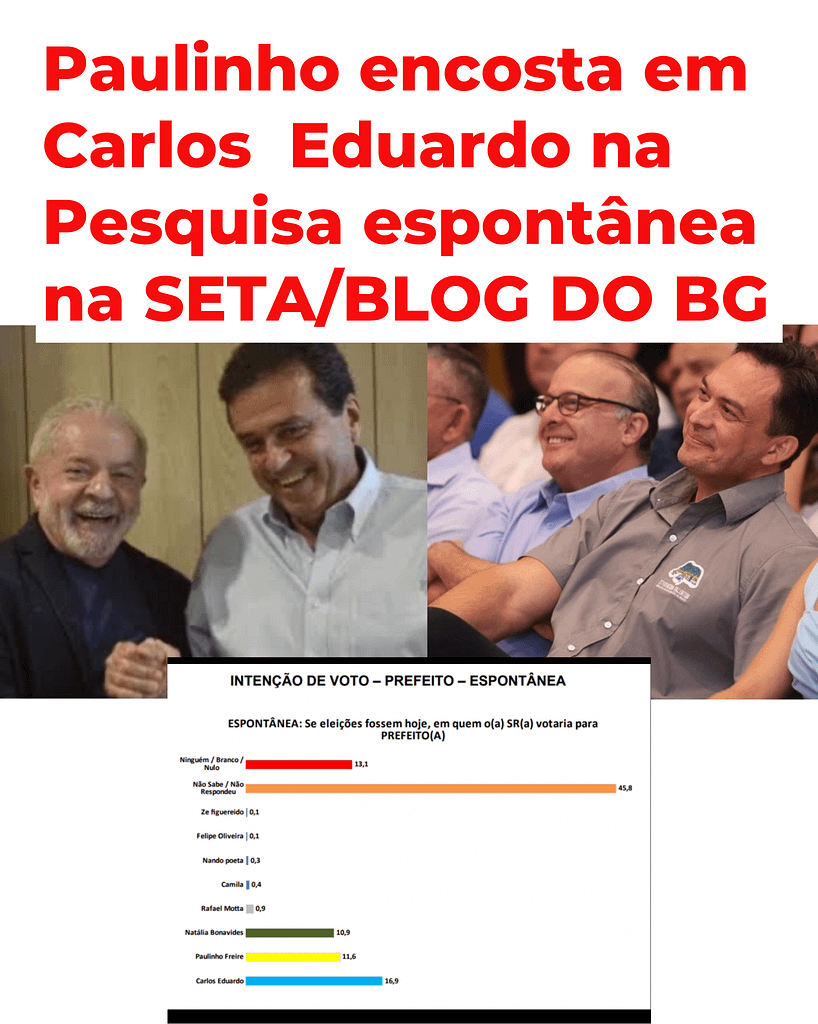 No cenário espontâneo para a Prefeitura, o ex-prefeito Carlos Eduardo lidera com 16,9%, seguido de Paulinho Freire 11,6%, Natália Bonavides 10,9%,Rafael Motta 0,9%, Camila 0,4%, nando Poeta 0,3%, Felipe Oliveira e Zé Figueiredo 0,1%. 45,8% ainda não sabem em quem votar e 13,1% votariam nulo.