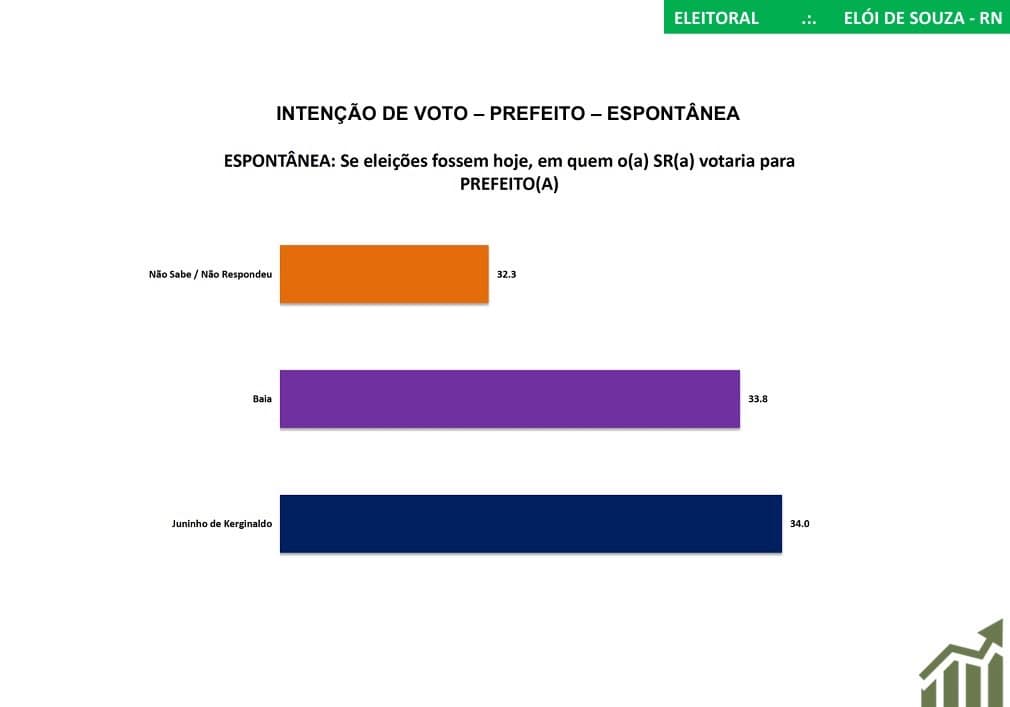 Dessa forma, com a queda constante das intenções de voto do candidato Juninho de Kerginaldo, o futuro se desenha de maneira muito favorável a Baía, indicando que ele será o próximo prefeito de Senador Elói de Souza.