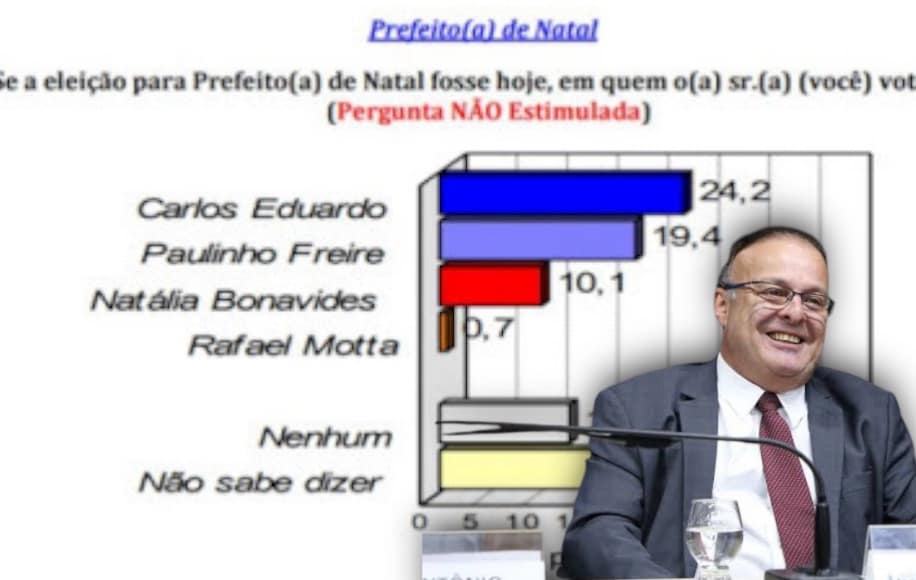Isso porque o ex-prefeito de Natal, Carlos Eduardo Alves (PSD), lidera a disputa com 35,7% das intenções de voto. Paulinho Freire, candidato do União Brasil, aparece em segundo, com 27,9%. Natalia Bonavides (PT) está em terceiro, com 14,1%.