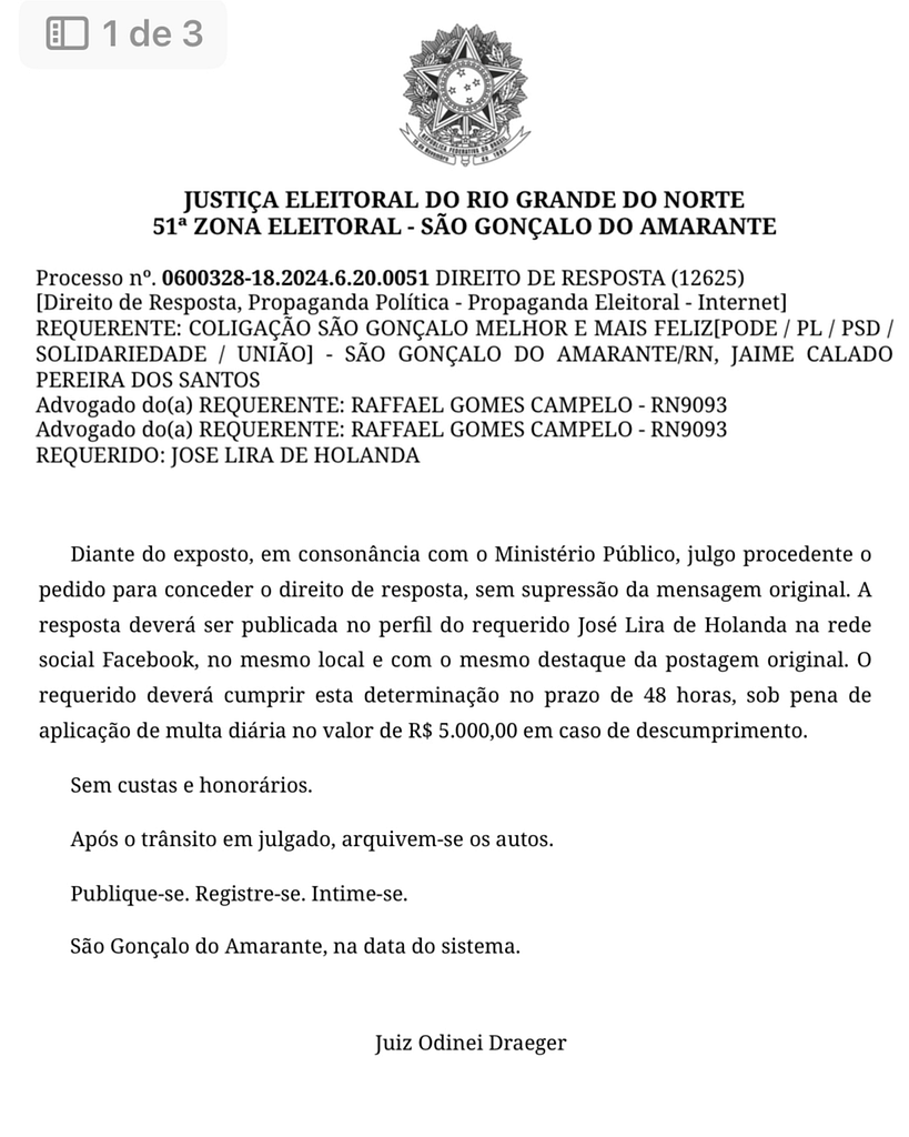 Lira espalhou que Jaime teria sido responsável pela devolução de recursos da UPA, além de ofendê-lo com termos como “bandido” e “canalha”. Só que a Justiça foi clara: quem não liberou os recursos foi o governo federal, não a gestão de Jaime! Resultado? Lira vai ter que publicar um direito de resposta com o mesmo destaque das ofensas. E se não cumprir? R$ 5 mil de multa por dia.