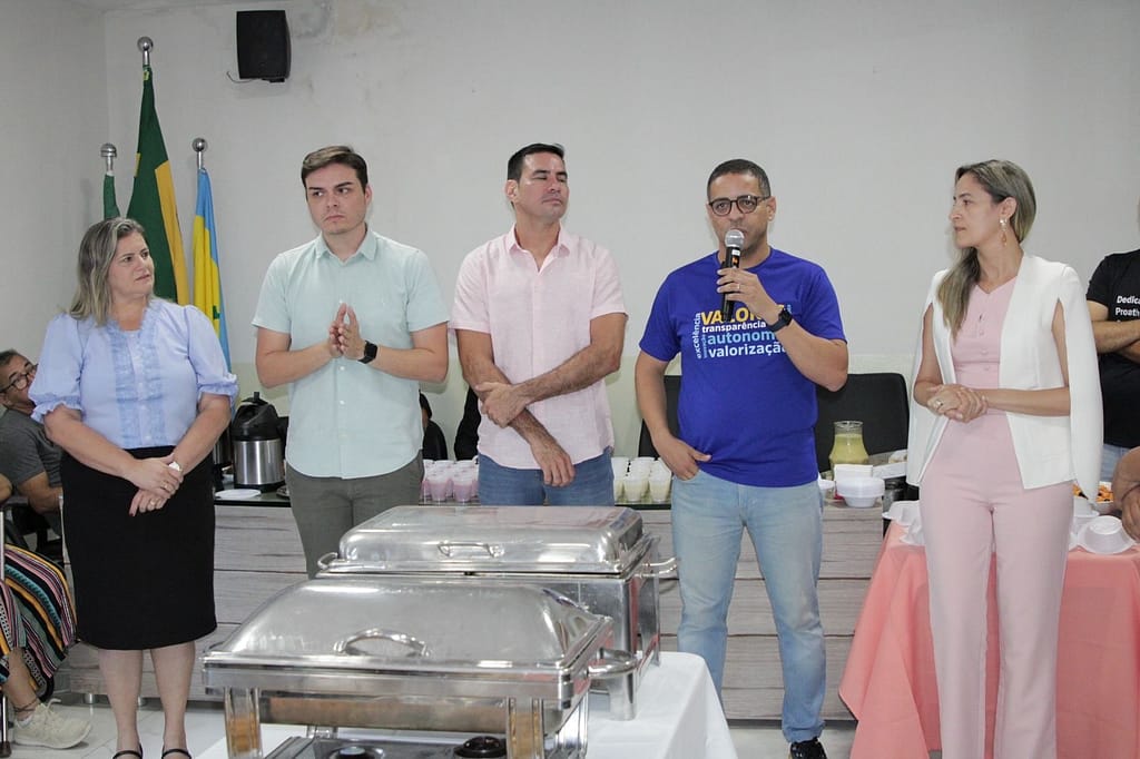 Durante o café da manhã desta segunda-feira (28), em homenagem ao Dia do Servidor Público, realizado na Câmara Municipal de Parnamirim, o presidente da Casa, Vereador Wolney França, anunciou um importante projeto voltado para os servidores da Sede do Legislativo. Estiveram presentes os vereadores Fativan Alves, César Maia e Michael Borges.