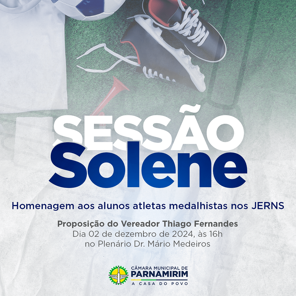 Na próxima segunda-feira (02/12), às 16h, a Câmara Municipal de Parnamirim, por proposição do vereador Thiago Fernandes, realizará uma sessão solene em homenagem aos alunos atletas do município que conquistaram medalhas nos Jogos Escolares do Rio Grande do Norte (JERNS). O evento, que acontecerá na sede da Câmara, tem como objetivo reconhecer o esforço, a dedicação e o desempenho dos jovens que destacaram a cidade em uma das competições escolares mais importantes do estado.