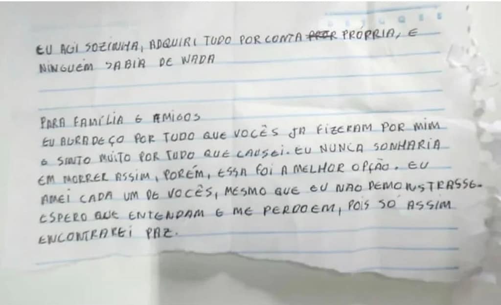 Além de conter a adolescente e apreender a arma do crime, os policiais recolheram uma carta de despedida escrita pela jovem, na qual expressava angústias e mencionava seus planos. A estudante foi detida e encaminhada para a Delegacia de Polícia Civil, onde as circunstâncias do caso serão investigadas.