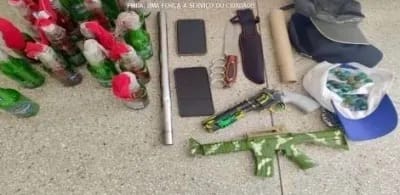Durante patrulhamento, a PM foi acionada para verificar uma denúncia sobre um grupo armado com coquetéis molotov, barras de ferro e fogos de artifício na rua da Cobal.