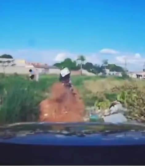 Desta vez, o motociclista foi flagrado ao realizar um retorno irregular pelo canteiro central da rodovia. Ao notar a aproximação da viatura, ele acelerou e passou a trafegar novamente na contramão, colocando em risco a segurança de pedestres e motoristas, especialmente em uma área próxima a uma escola.