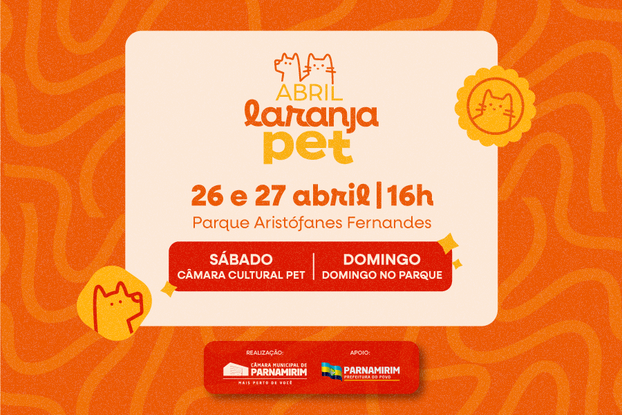 Em alusão ao Abril Laranja — campanha nacional de conscientização e combate aos maus-tratos contra os animais — a Câmara Municipal de Parnamirim está promovendo uma série de ações ao longo deste mês. Entre elas, destaca-se o Dia D Abril Laranja Pet, de autoria da Frente Parlamentar em Defesa dos Animais.