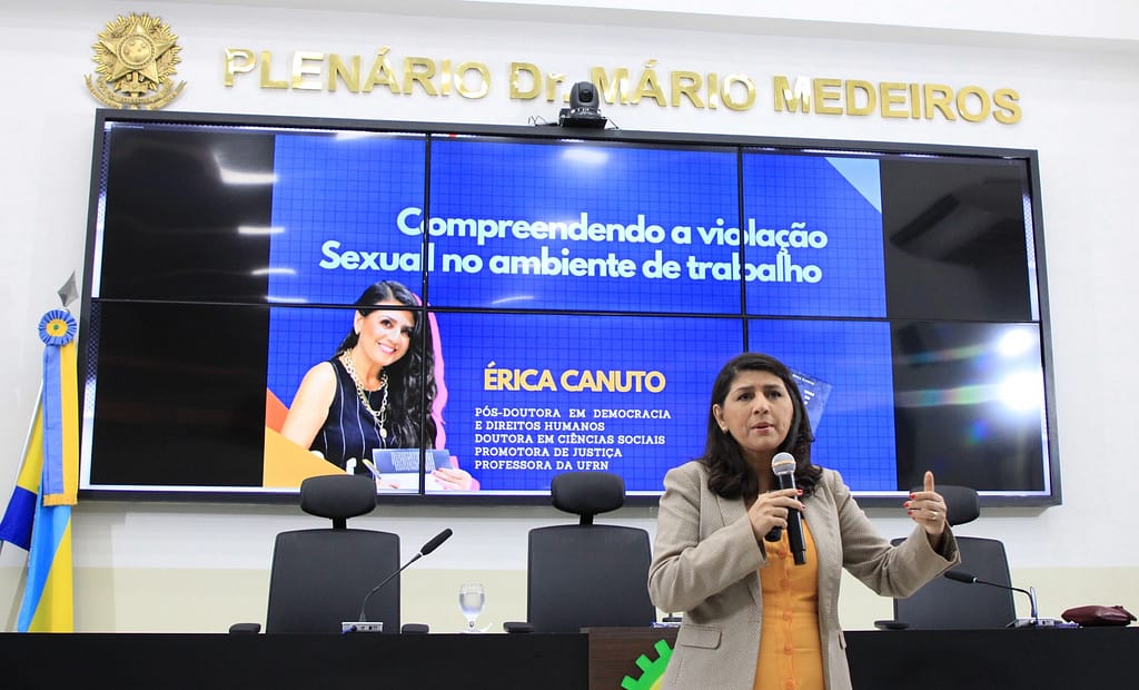 Buscando reforçar a importância de interações profissionais mais seguras, éticas e respeitosas, o vereador Michael Borges propôs a realização de uma palestra com o tema “Assédio Moral e Sexual no Ambiente de Trabalho”. O evento, ministrado pela promotora de Justiça e professora de Direito da UFRN, Érica Canuto, aconteceu nesta quinta-feira, 15, Plenário Dr. Mário Medeiros, na Câmara Municipal de Parnamirim.