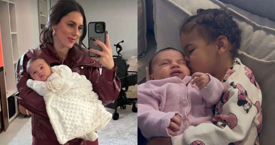 A irmã da influenciadora Bruna Biancardi, 31, Bianca Biancardi compartilhou nesta terça-feira (5) um registro das duas sobrinhas juntas. No registro, Mavie, de 1 ano, aparece beijando a irmã caçula, Mel, de 1 mês.
