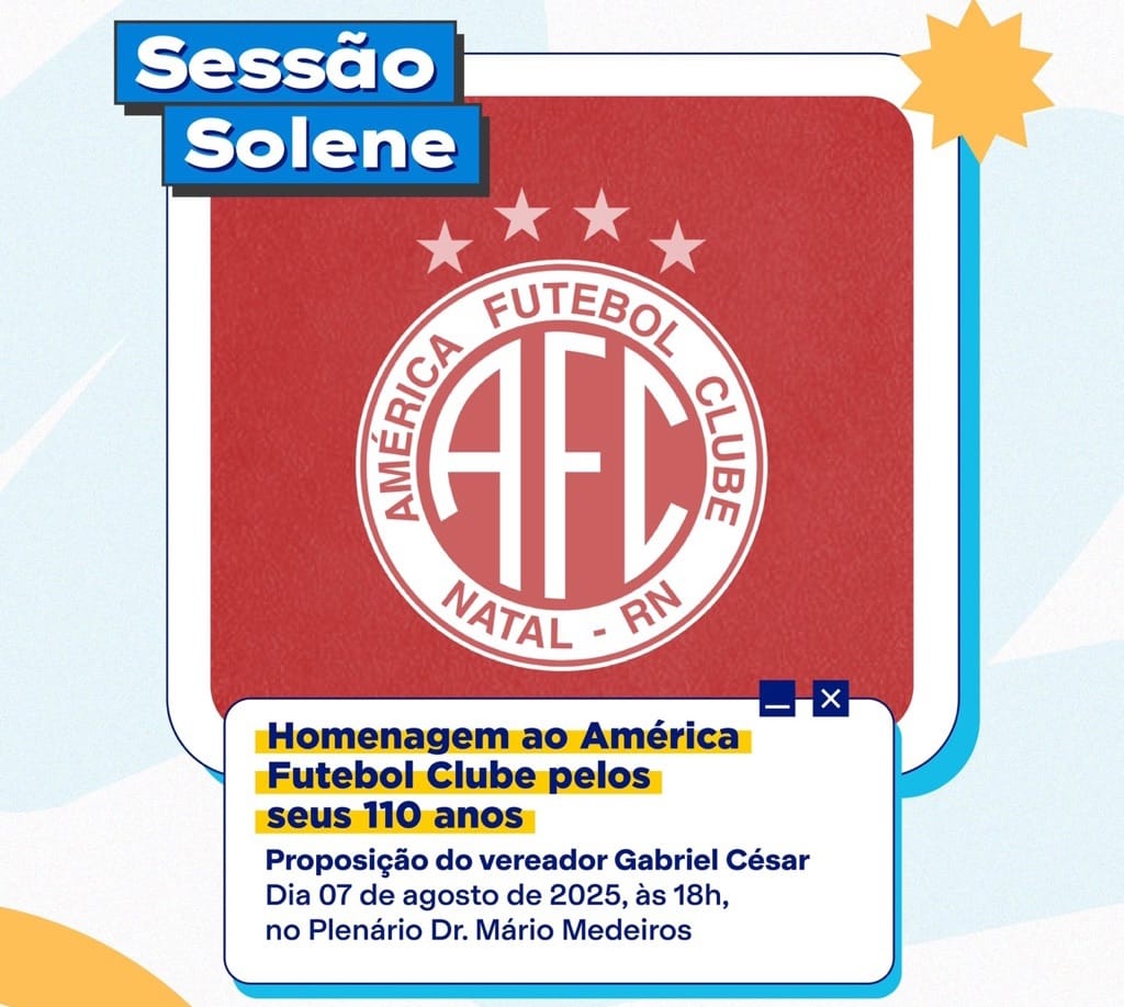 No ano em que o América Futebol Clube completa 110 anos, a Câmara de Parnamirim, por proposição do vereador Gabriel César, vai realizar uma sessão solene para homenagear o time potiguar. O evento ocorre no dia 07 de agosto, às 18h no plenário Dr. Mário Medeiros.