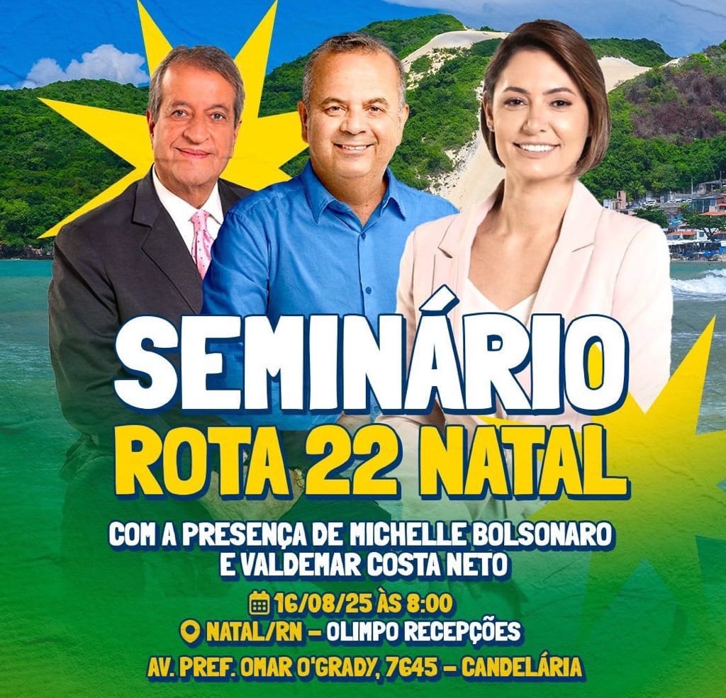 A próxima parada do Rota 22 será neste sábado, 16 de agosto, em Natal, com o Seminário da Região Metropolitana, a partir das 8h, no Olimpo Recepções, em Candelária. O evento contará com a presença da ex-primeira-dama Michelle Bolsonaro, presidente nacional do PL Mulher, como convidada especial, assim como o presidente nacional do PL, Valdemar Costa Neto que será um dos palestrantes do evento. O Rota 22 segue mobilizando lideranças e a população do Rio Grande do Norte em torno de debates sobre o futuro do estado e do país.
