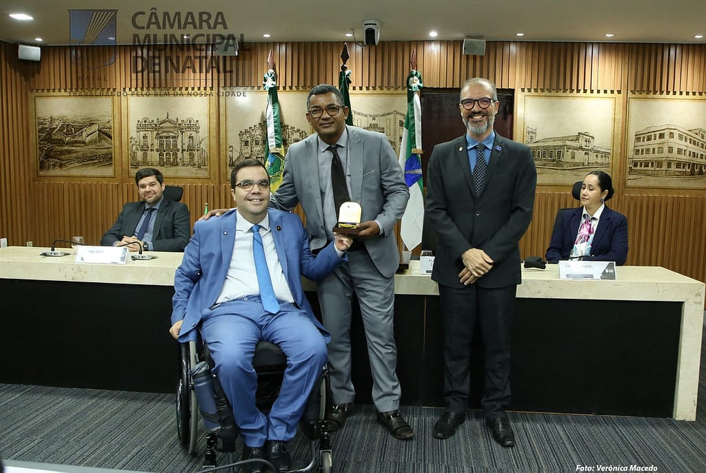 A Câmara Municipal de Natal realizou, nesta terça-feira (14), a Sessão Solene de Entrega da Comenda Cristina Varela Albuquerque Cariello, em alusão ao Dia do Administrador, por proposição do vereador Tércio Tinoco (União Brasil). A homenagem, criada por iniciativa do próprio parlamentar, reconhece profissionais, empresas e instituições que se destacam pela excelência em gestão, inovação e contribuição para o desenvolvimento econômico e social da capital potiguar. Ao todo, sete administradores e uma empresa de terceirização de serviços foram agraciados na solenidade.