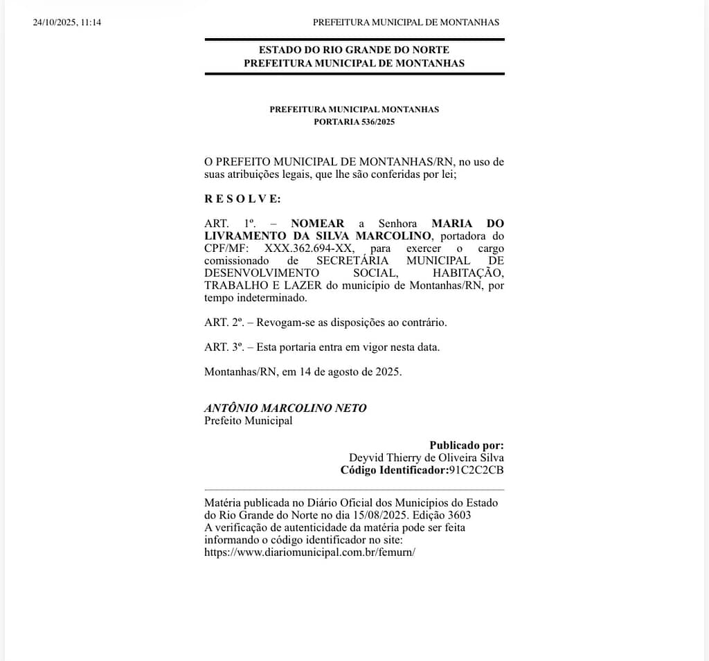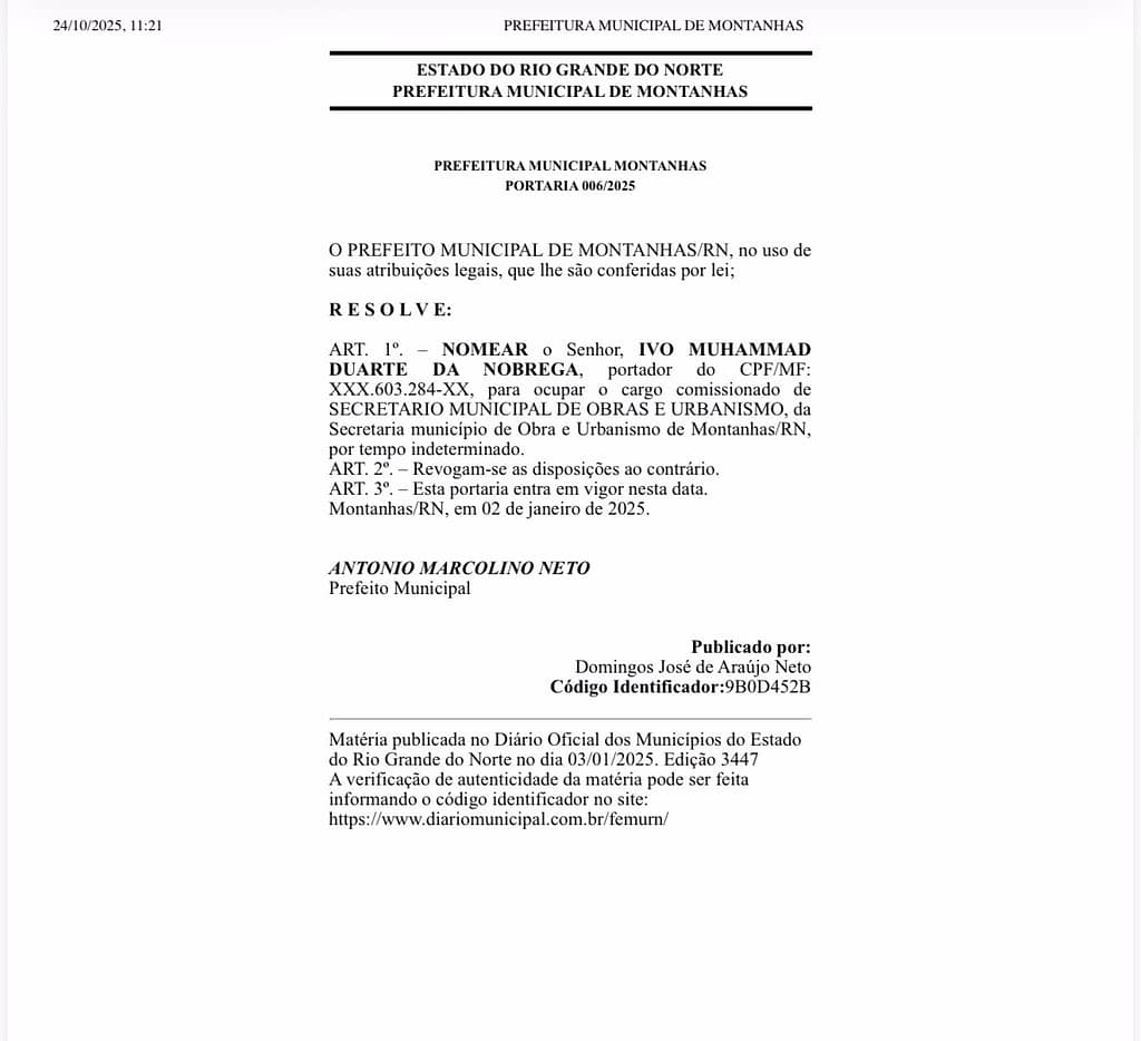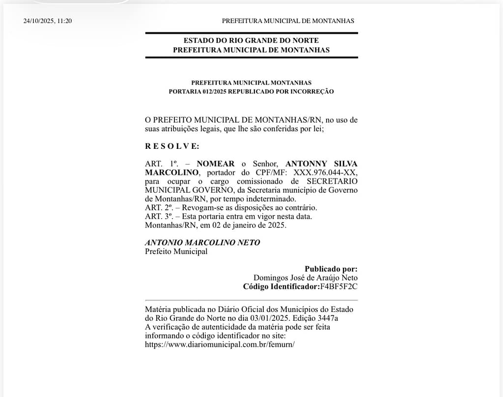 Enquanto o Supremo Tribunal Federal discute se a nomeação de parentes para cargos políticos configura nepotismo, um caso no interior do Rio Grande do Norte reacende o debate sobre limites éticos na administração pública. No município de Montanhas, com pouco mais de 11 mil habitantes, seis integrantes do alto escalão da gestão municipal possuem vínculos familiares diretos com o prefeito Antonio Marcolino Neto.