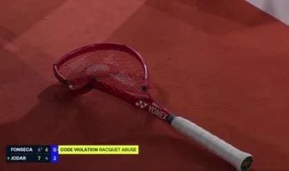 Após perder o saque, Fonseca demonstrou frustração em quadra e quebrou a própria raquete. O gesto ocorreu ainda nos primeiros momentos do set, enquanto Jodar ampliava o controle do jogo.